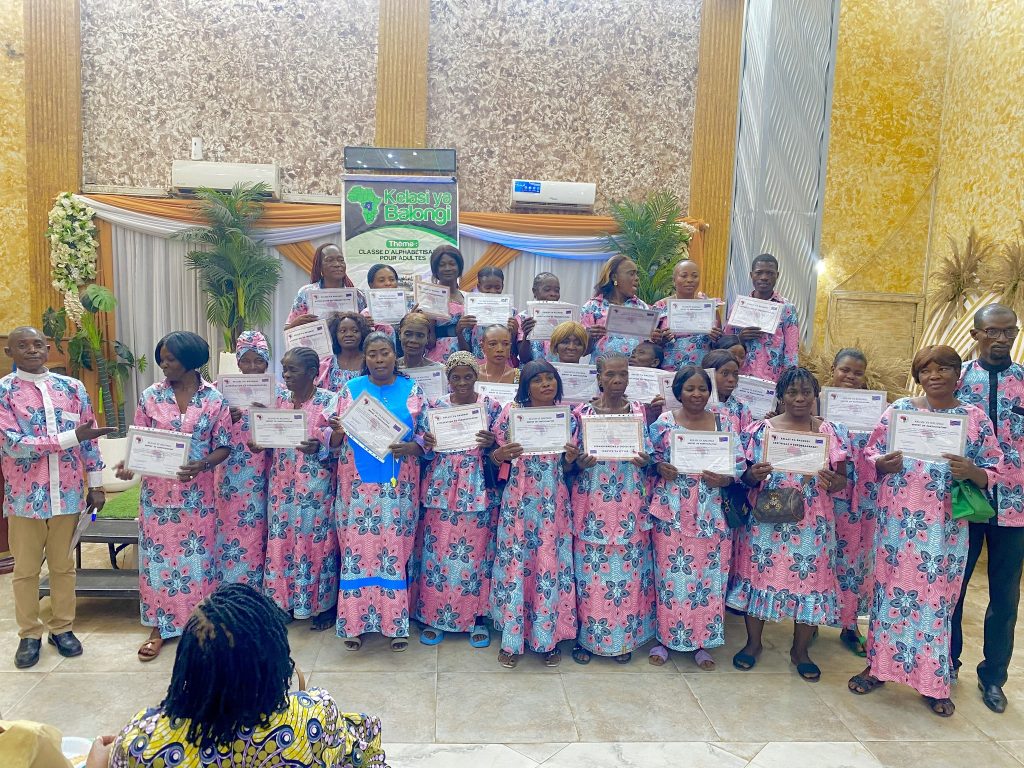 La CÉRÉMONIE DE REMISE DES CERTIFICATS de fin de formation d’alphabétisation aux lauréates de la 4° édition de l’Association des Femmes pour des Rencontres Intellectuelles, Culturelles et Artistiques (A.F.R.I.C.A.) , qui s’est tenue le mardi 29 avril 2025, de 10h00′ à 13h00′, à la salle de fêtes Fal Bob de Bandalungwa. (Réf. Institut Bokolo).